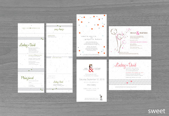 we want to make sure that you love your invitations, so if plantable paper isn’t your thing, we produce your invitations, reply cards, or other event stationery on such papers as: